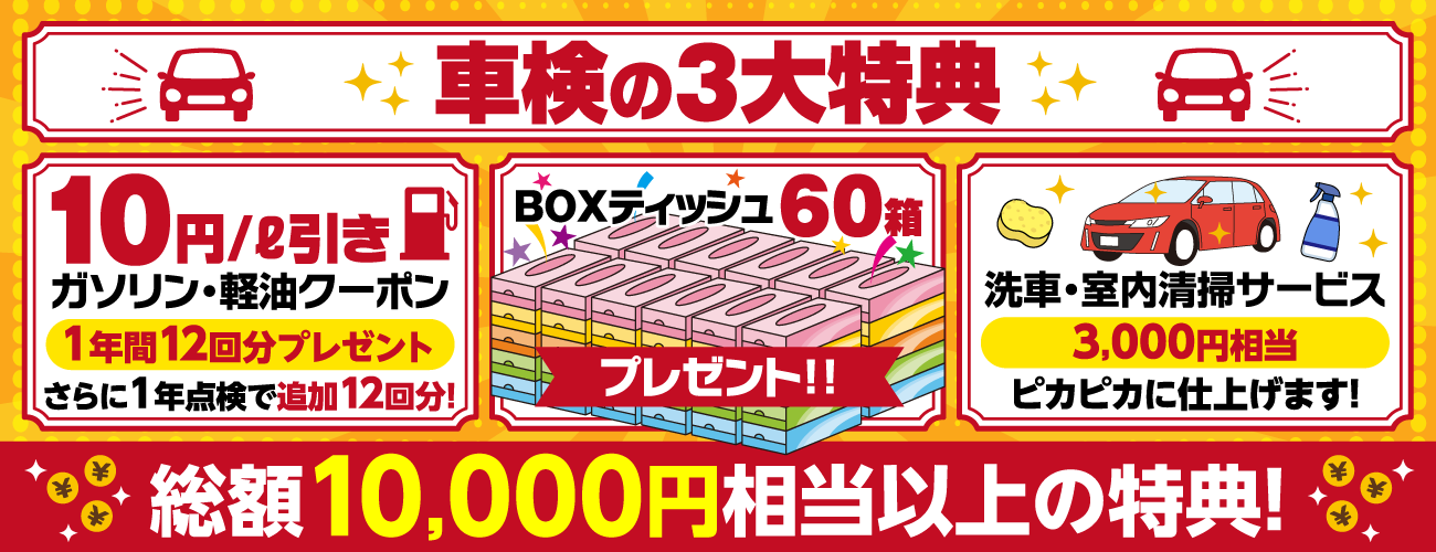 車検実施でBOXティッシュ60箱プレゼント!